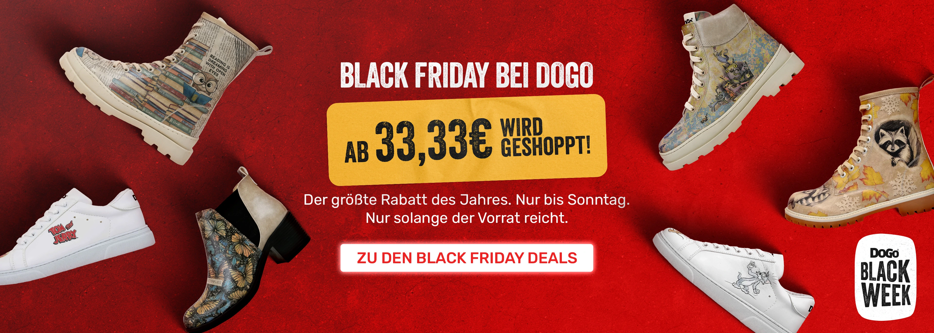 Wer weitere speziell auf Themen zugeschnittene Motive oder Designs sucht, wird in unserer DOGO Themenwelt fündig. Hier präsentieren wir Ihnen die ganze Welt von DOGO nach verschiedenen Themen sortiert. Tolle Schuhe mit Katzen oder auch mit Hundemotiven, originelle Schuhe zum Thema Liebe oder mit Blumen oder auch Schuhe mit Totenköpfen sind Teil unserer Themenwelt. Oder mögen Sie es lieber in Schwarz? Dann ist unsere Themenwelt DOGO Black genau das Richtige für Sie. Finden Sie ihren persönlichen Stil und werden Sie Teil der großen DOGO Familie.