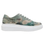 Sportlich und stylisch präsentiert sich das neue DOGO-Modell Myra in vielen verschiedenen Designs. Durch die vier Zentimeter hohe Sohle wird ein aktueller Trend aufgegriffen, der aus der Modewelt nicht mehr wegzudenken ist: Plateau. Mit diesem Schuh heben sie sich sprichwörtlich von der Masse ab. Das neue Modell wird mit den für DOGO spezifischen Mustern und Designs abgerundet. Trotz der Plateausohle wirkt das Modell Myra keineswegs klobig am Fuß. Tragekomfort wird hier ganz großgeschrieben, denn Innen ist eine neue angenehm weiche Sohle verarbeitet worden, damit sich Ihre Füße den ganzen Tag in den DOGO Schuhen wohlfühlen. Eine Acht-Loch-Schnürung sorgt für den nötigen Halt am Fuß. Auch bei diesem Trend-Sneaker setzt DOGO ausschließlich auf vegane Materialien und beste Qualität.
